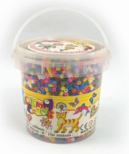 Открийте креативен комплект за деца от 6 години: мъниста за гладене в практична кофичка. Съдържа до 9000 мъниста и шаблони на фигурки, за да могат децата да създават цветни изображения и да развиват фината моторика, търпението и креативността.