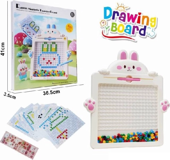 Игрална магнитна табла във форма на зайче ще зарадва деца от 3 години. Предлага лесно рисуване с магнитна писалка, използване на шаблони и многократно изтриване. Страхотна за развитие на фината моторика, креативност и учене на форми.