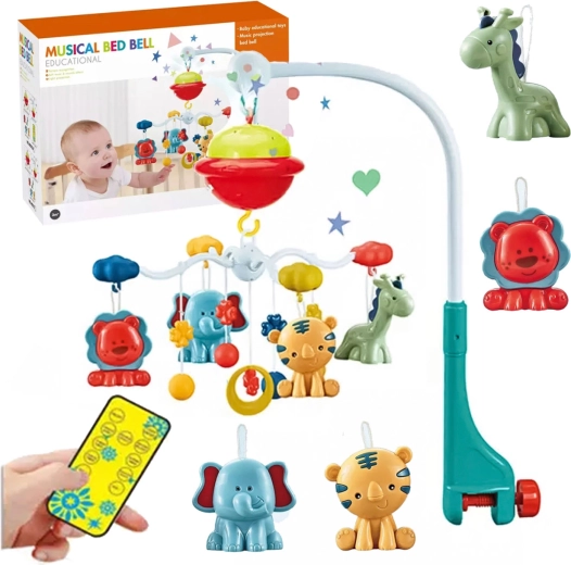 Въртележникът с проектор създава спокойна среда за заспиване. Благодарение на тихата работа и 360° въртене, той придружава бебето с нежни движения и светлинни ефекти, които подпомагат визуалното възприятие и успокояването. Управлението е лесно – превключвайте функциите директно на проектора или с включеното дистанционно.