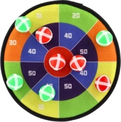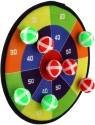 Играта включва 8 топчета с велкро, които сигурно прилепват към мишената, като по този начин се минимизира необходимостта от надзор за безопасност. Мишената е оборудвана с халка за лесно окачване в стаята.