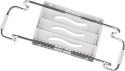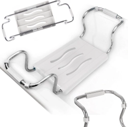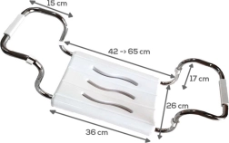 Практична и безопасна седалка за вана за комфортно къпане у дома. Благодарение на регулируемата ширина 42,5–65 см пасва на повечето вани, товароносимост 120 кг осигурява сигурност, а противохлъзгащите вложки защитават ръба на ваната. Стабилна хромирана конструкция и отточни отвори за лесно изсъхване и хигиена.