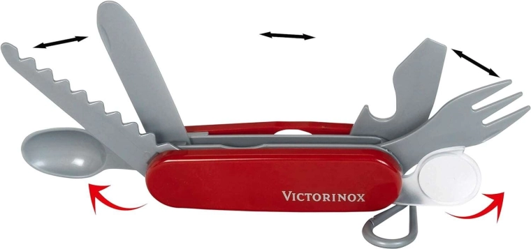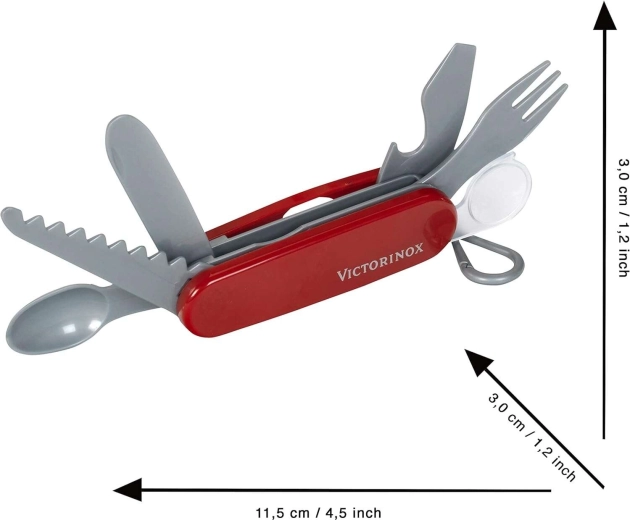 Детският джобен нож VICTORINOX от KLEIN е вярна, но напълно безопасна реплика на легендарния швейцарски нож. Благодарение на прецизната изработка, червената ръкохватка с лого и практичния карабинер малките приключенци могат да го закачат на колан и да го имат винаги под ръка.