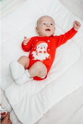 Това меко и удобно боди с дълъг ръкав впечатлява с красивия червен цвят и весел зимен мотив с пингвин. Практичното закопчаване с копчета тик-так на рамото и между крачетата ускорява преобуването и улеснява обличането дори на най-малките.