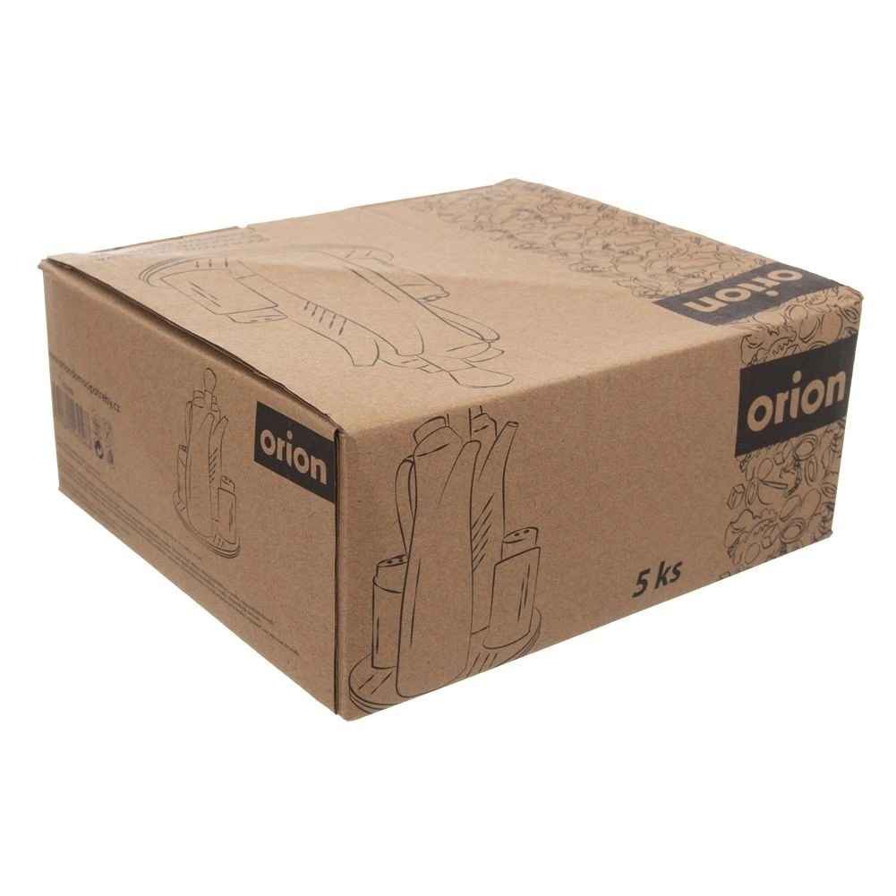 Комплектът включва две бутилки от 300 мл за олио и оцет, солница и пиперница, всички разположени върху компактна въртяща се поставка с практична дръжка за удобно пренасяне. Минималистичната визия приляга отлично както на модерна, така и на класическа маса и позволява елегантно сервиране на подправки.