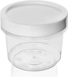 Надежден и универсален кръгъл контейнер с обем 300 мл с бял капак и прозрачно тяло, което позволява лесна проверка на съдържанието без отваряне. Благодарение на качественото уплътнение кутията е изключително херметична и запазва храната ви по-дълго свежа – без риск от разливане при пренасяне.