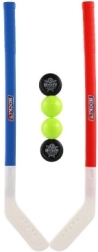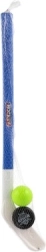 В комплекта ще откриете пластмасова стика, шайба и топче за пълно хокейно изживяване.