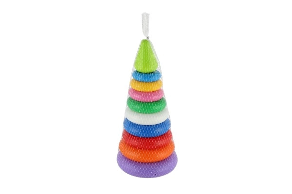 Нашата пъстроцветна сглобяема пирамида се състои от осем различно оцветени пластмасови ринга, които лесно се подреждат един върху друг във форма на пирамида. Тази дидактическа играчка е създадена да стимулира визуалното възприятие и моторните умения на децата още от най-ранна възраст.