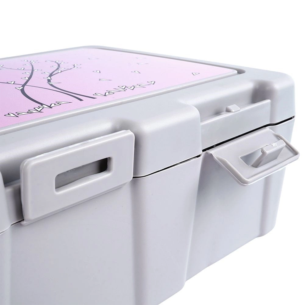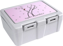 Кутията е изработена от висококачествена пластмаса, безопасна за контакт с храни, в елегантен сив цвят с декоративен розов панел със сърчица. Идеална за деца за училище и възрастни за работа, за излети и пътуване. За запазване на външния вид не се препоръчва миене в съдомиялна машина и загряване в микровълнова.