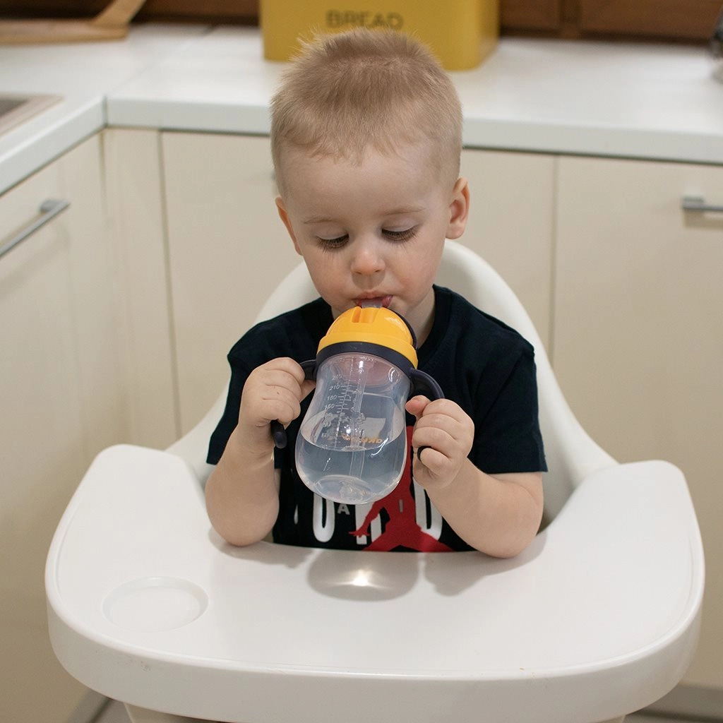 Силиконовата сламка с тежест позволява на детето да пие дори при накланяне или обръщане на бутилката – напитката се изпива наистина до последната капка.