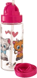 Очарователна детска бутилка от издръжлив тритан с обем 490 ml, със сгъваем капак, вградена сламка и регулируема презрамка. Идеална за пиене у дома и в движение. Без BPA, лека и нечуплива, със силиконово уплътнение против протичане и лесна за почистване.