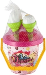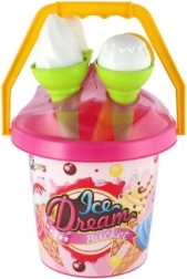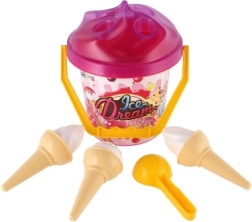 Очарователният комплект за пясък „Ice Dream Bucket“ превръща всяка пясъчник или плаж в малка сладкарница за сладолед. Децата ще се забавляват с креативна игра на сладолед, ще загребват пясък със сладоледена лопатка и ще правят топки в фунийки. Лека, цветна и безопасна играчка с CE сертификат, идеална за деца от 1 година.