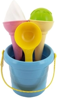Очарователният комплект за пясък с мотив сладолед ще зарадва всеки малък творец. Децата могат да „сипват“ собствен сладолед от пясък и да играят на кафене, ресторант или магазин. Лека, безопасна и забавна играчка с CE сертификат за деца от 1 година – идеална за плажа, детската площадка и градината.