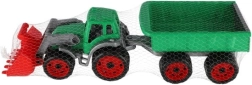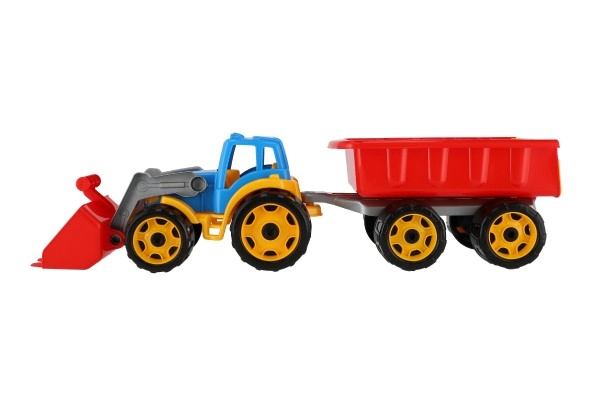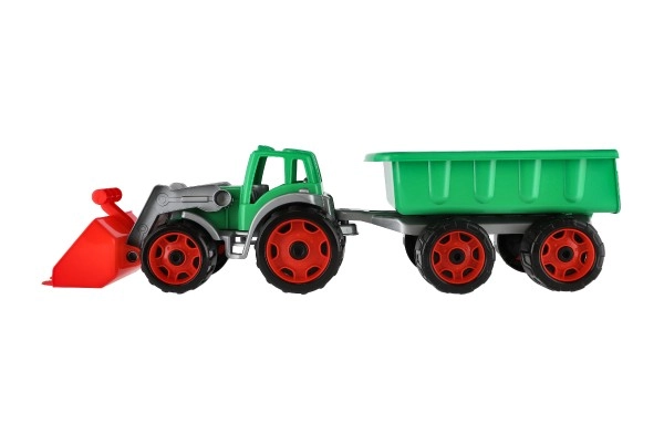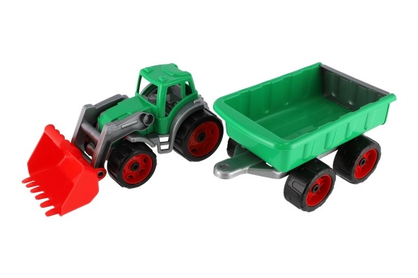 Този трактор с товарач и ремарке е изработен от здрава пластмаса, която издържа на детски игри и е устойчива на повреди.