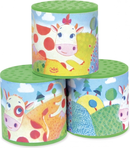 Тази метална звукова кутийка при обръщане издава характерното „мууу“, което вярно наподобява звук на кравичка. Тя е чудесна за сетивна игра, насърчава любовта към музиката и помага на децата да развиват ритъм и слухово възприятие. Компактните размери са перфектни за малките детски ръчички.