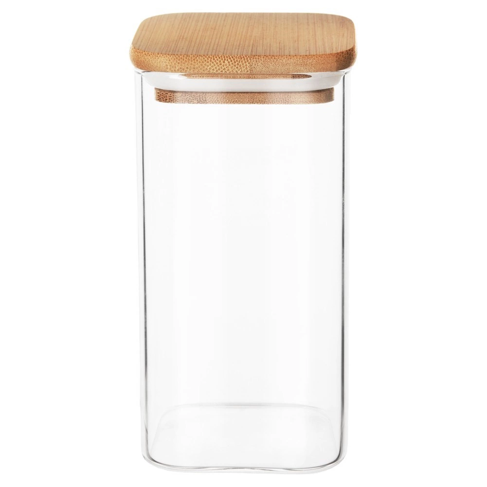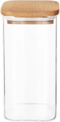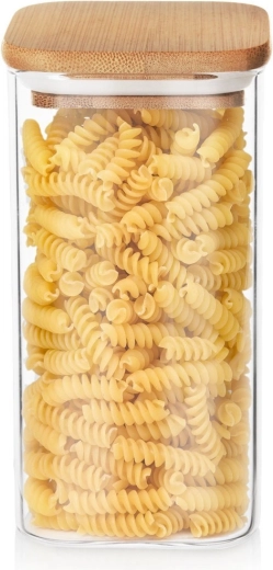 Този качествен стъклен буркан съчетава изчистен дизайн и функционалност. Боросиликатното стъкло е устойчиво на температурни промени, а капакът от естествен бамбук със силиконов пръстен осигурява надеждна херметичност и по-дълга свежест на съхраняваните храни. Прозрачното стъкло позволява лесна проверка на съдържанието и количеството.