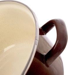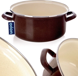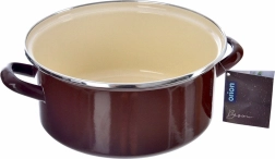 Емайлираната тенджера Brown е надежден помощник за всекидневно готвене и задушаване. Емайлираната повърхност е безвредна за здравето и подходяща и за алергични, като същевременно отлично устоява на износване и улеснява почистването. Бежовият интериор с гладка глазура минимизира загаряне и позволява удобна поддръжка.