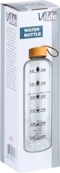 Върху прозрачния корпус ще намерите времеви маркировки от сутрин до вечер, които помагат да следите хидратацията си. Бутилката е с обем 1 литър, височина около 29,5 см и диаметър 7,5 см – идеална за офиса, път и спорт. Лесното почистване е гарантирано от възможността за миене в съдомиялна.