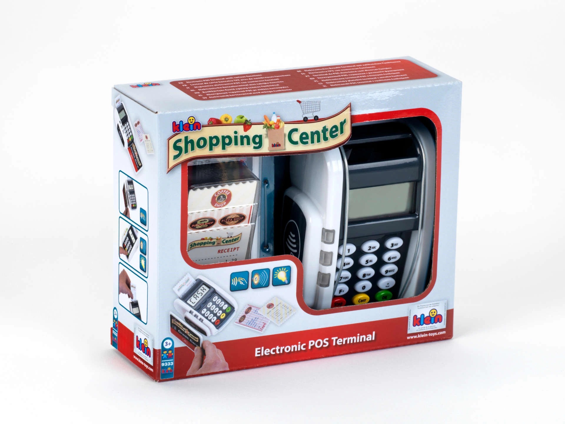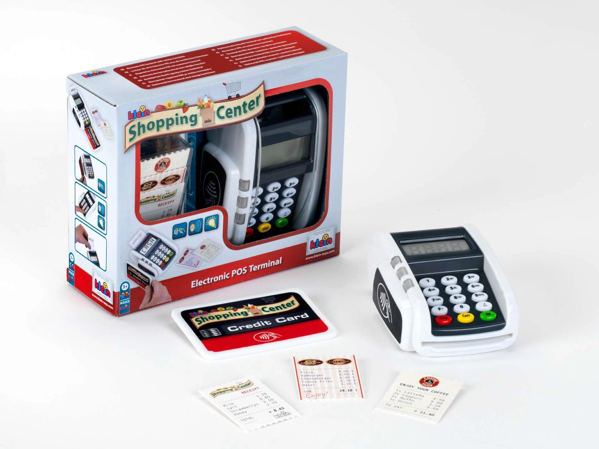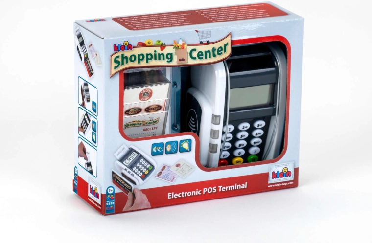 Реалистичният детски платежен терминал на марката KLEIN носи забавление като на каса. Предлага функционални бутони, четец за безконтактни плащания, светлинни и звукови ефекти и позволява на децата по забавен начин да развиват въображението си, играейки на магазин или ресторант.
