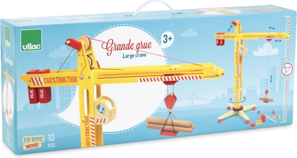Открийте големия дървен кран VILAC, който превръща всяка детска стая в оживена строителна площадка. Предлага пълна ротация, повдигане и преместване на товари с помощта на две въртящи се ръчки, стабилна широка основа и богати аксесоари, включително магнит, фигурки и товари. Здравата комбинация от масивно дърво и шперплат с безвредни бои гарантира дълъг живот и безопасна игра.