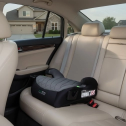 Бустерът повдига детето до правилната височина, така че триточковият колан да минава безопасно през рамото и таза. Сертификацията i-Size (ECE R129/03) гарантира проверена защита.