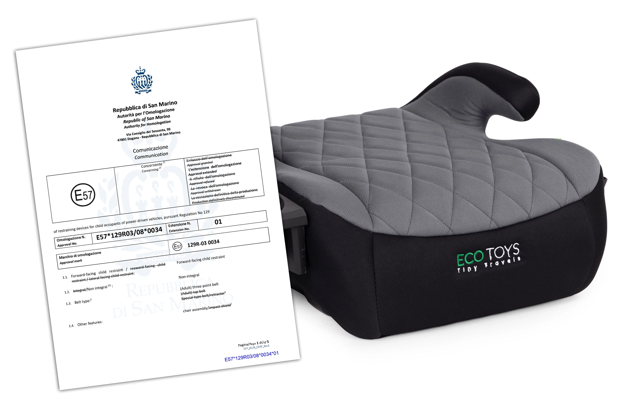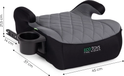 Бустерът ECOTOYS е проектиран за безопасно и удобно пътуване на по-големи деца. Благодарение на стабилното закрепване ISOFIX стои здраво на място и осигурява правилно позициониране и водене на триточковия колан. Здрава пластмасова черупка, меко подплащане и ергономична форма предоставят комфорт и при по-дълги пътувания. Сваляемият калъф от издръжлив полиестер лесно се пере.