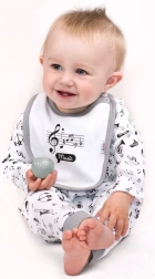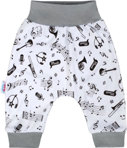 Удобни и много меки полу-гащеризони от 100% памук с игрив мотив на нотки и музикални инструменти. Имат широк, нестягащ колан, който не притиска коремчето, и практично закопчаване с копчета между крачолите за бърза смяна на пелените. Универсален дизайн за момиченца и момченца.