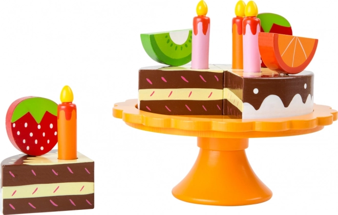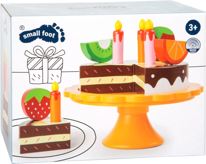 Дървената празнична плодова торта на Small Foot е перфектна за всеки детски празник. Интерактивната играчка позволява на децата да играят с отделните парчета плодове, които са прикрепени с помощта на клечки и могат лесно да се преместват. Свещичките и декорациите придават автентичен вид на тортата и децата могат да си устроят истинско празненство.