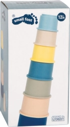 Открийте универсална играчка за най-малките: меките силиконови чашки SMALL FOOT, създадени за подреждане, вгнездяване и водна или пясъчна игра. Нежните пастелни цветове, релефните животински мотиви и приятната повърхност подпомагат сензорната стимулация, както и търпението и концентрацията.
