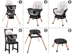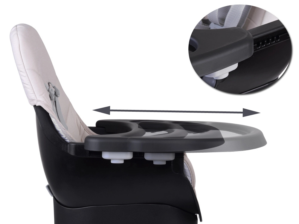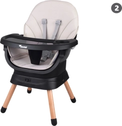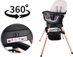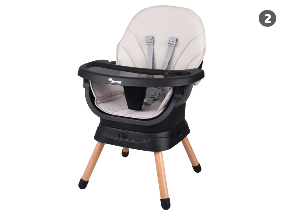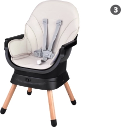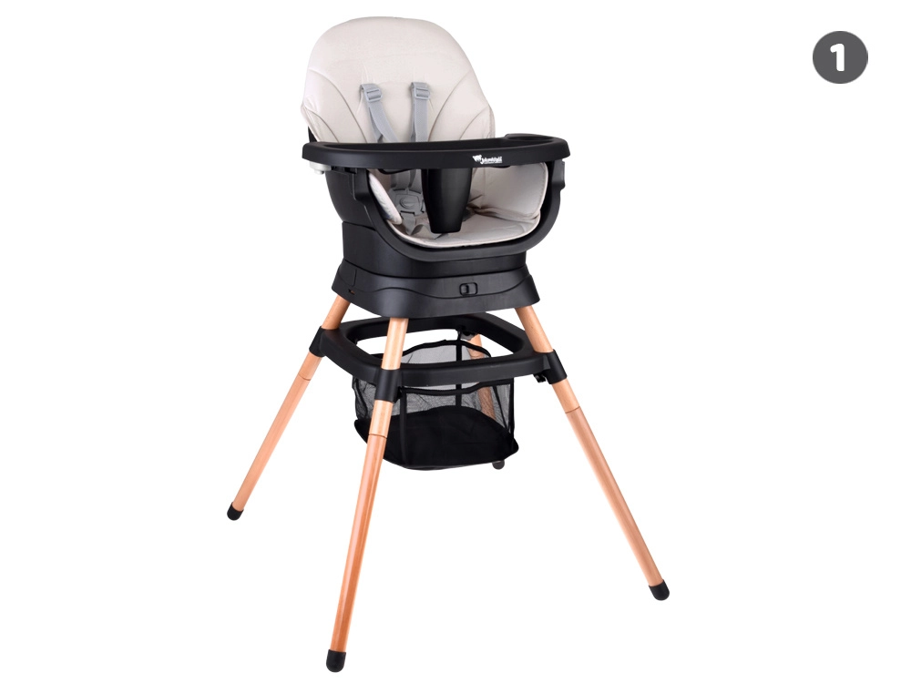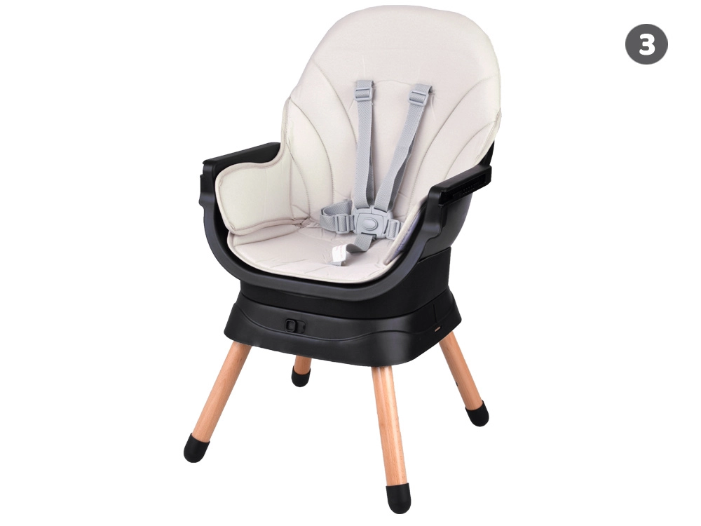 Този модерен и ергономичен стол комбинира стабилност, безопасност и модулен дизайн. С лесна клик система го преобразувате според текущите нужди на детето – от първите захранвания до самостоятелно седене и игра. Минималистичният вид пасва във всеки интериор.