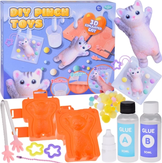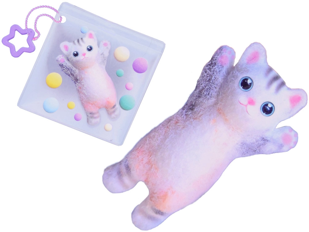 Открийте забавен DIY комплект, с който децата сами ще създадат сладък котешки ключодържател. Смесват масата, оцветяват, декорират с помпони, звездички и меко „перце“ и поставят готовото котенце в декоративно пликче с верижка. Резултатът е антистрес, мек и пухкав талисман, който могат да носят навсякъде.