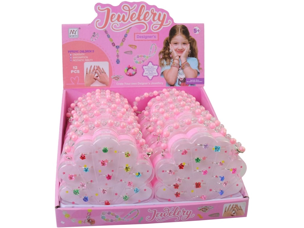 Очаровайте малките дами със стилен комплект пръстени. Опаковката съдържа 12 броя в практична дисплейна кутия, изработени от комбинация от пластмаса и метал. Подходящо за деца от 3 години. Лесна украса на пръстчетата, лек материал и без необходимост от батерии за безопасна и безгрижна игра.