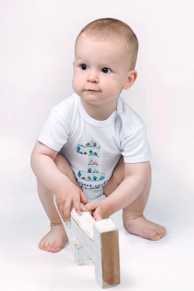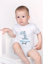 Очарователно памучно боди с дълъг ръкав New Baby за празнуване на първия рожден ден. Удобна кройка, сертифициран печат, подходящ за бебета и практично закопчаване с тик-так копчета на рамото и между крачетата за лесно обличане и преобуване. 100% памук осигурява мекота и комфорт при носене.