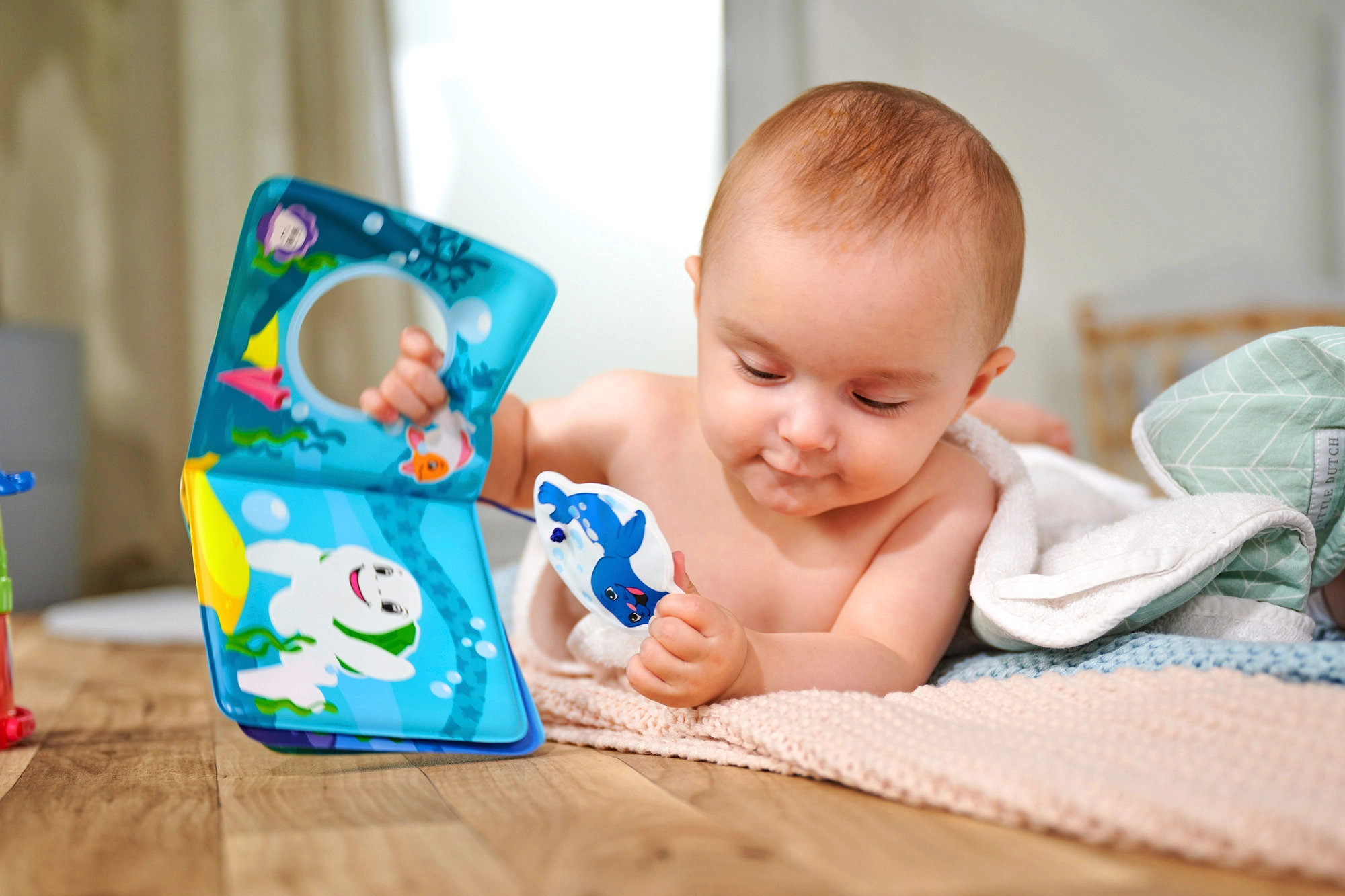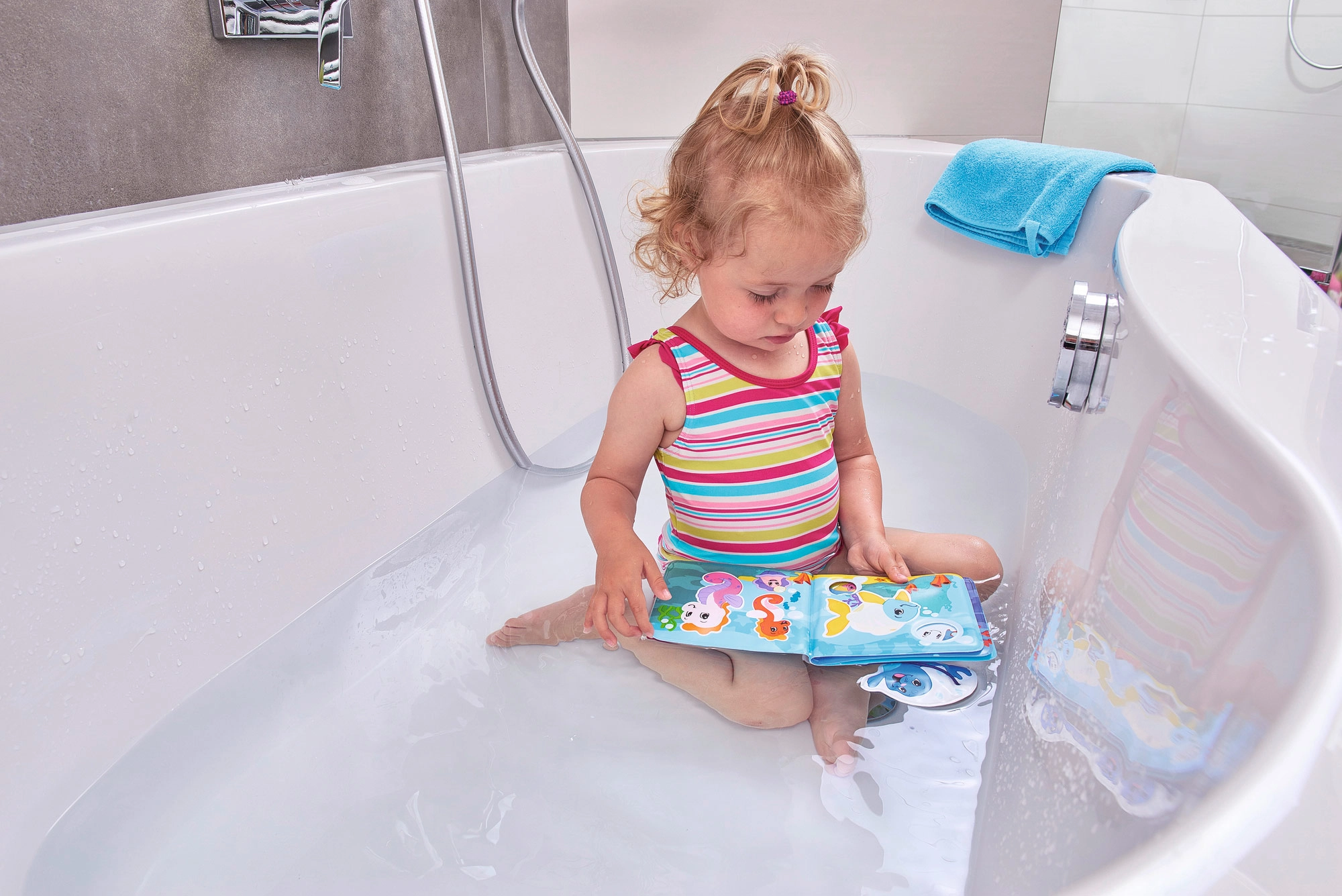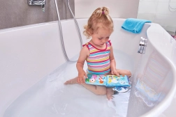 Леката конструкция плува във водата и е безопасна за игра във ваната и басейна. Децата лесно прелистват и откриват цветовете и формите.