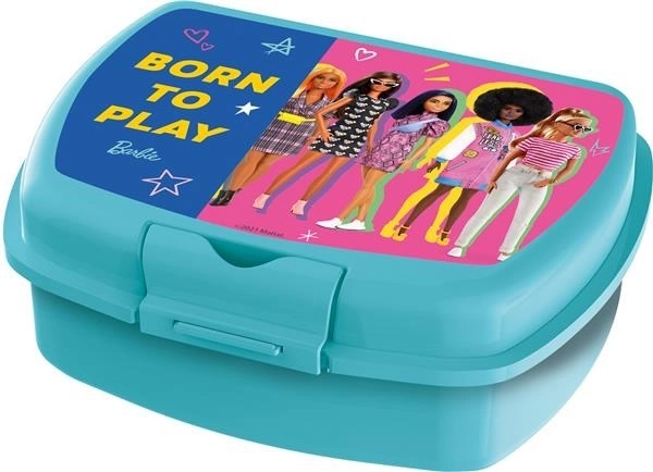 Практична и стилна кутия за закуски с мотив BARBIE в тюркоазен цвят ще зарадва всяка училищна звезда. Предлага достатъчно пространство за сандвичи, плодове и малки вкусотии, лека е, издръжлива и се почиства лесно – идеална за училище, излети и пикници.