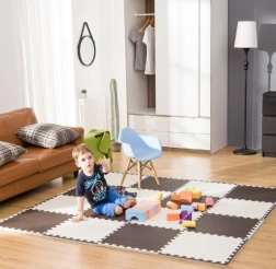 Мека и безопасна пенена постелка за бебета и деца с размер 120 × 60 × 1 см от два модула 60 × 60 см с кантове. Изработена от еластична EVA пяна, водоустойчива, лесна за почистване, антислип и без вредни вещества (без фталати, формамид, BPA и PVC). Изолира студа, омекотява паданията и пъзелите могат да се свързват в по-големи повърхности и 3D форми. Сертификация CE, стандарти EN 71 и REACH.