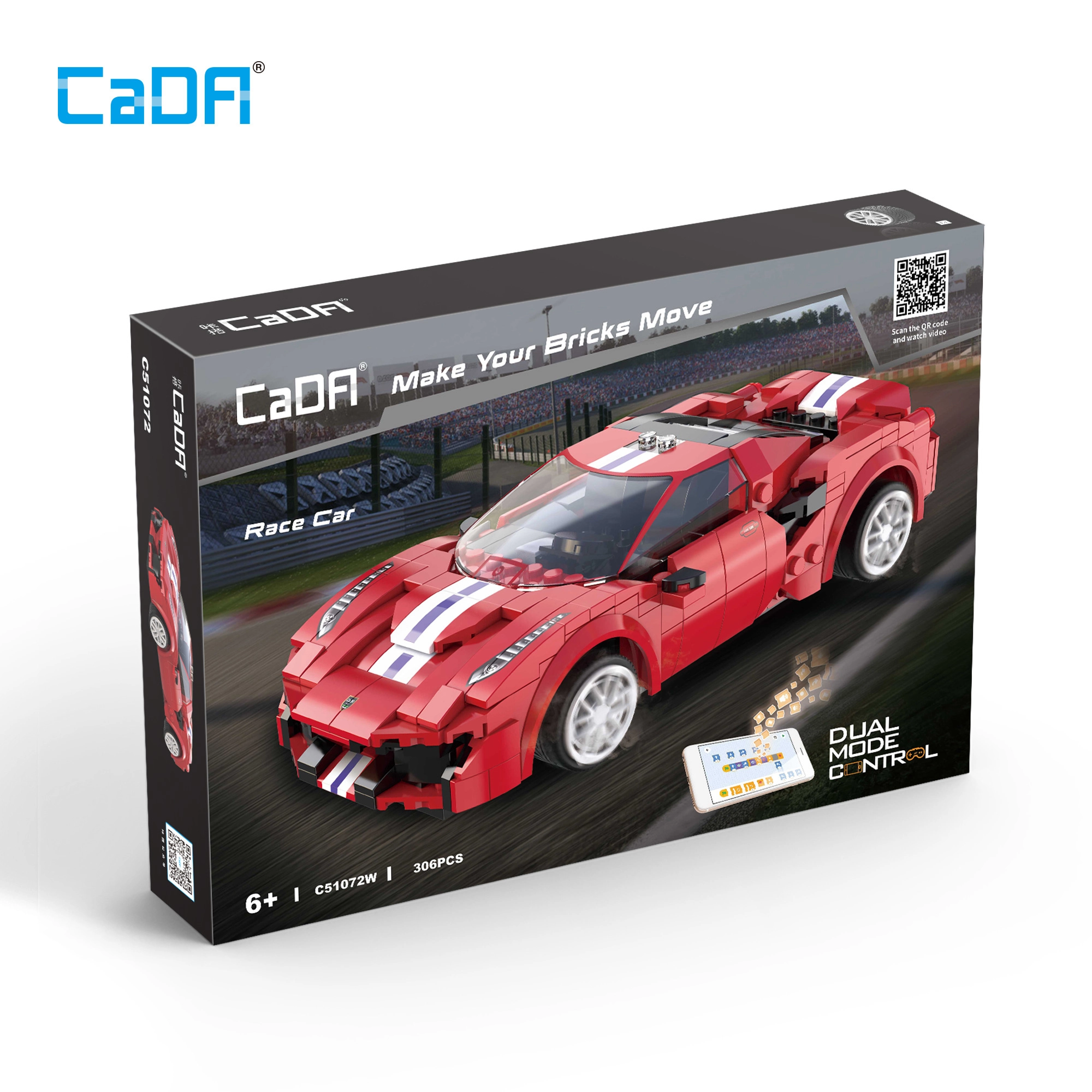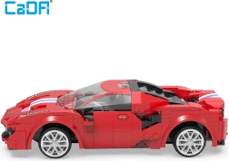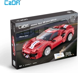 Сглобете собствен дистанционно управляван състезателен автомобил от марката CaDA и се насладете на шофиране с двойно управление чрез 2,4 GHz контролер или Bluetooth приложение. Моделът с 306 части има детайлна червена каросерия, гумени колела за добра устойчивост и обхват на управление над 25 м. Максимална скорост до 3,8 км/ч.