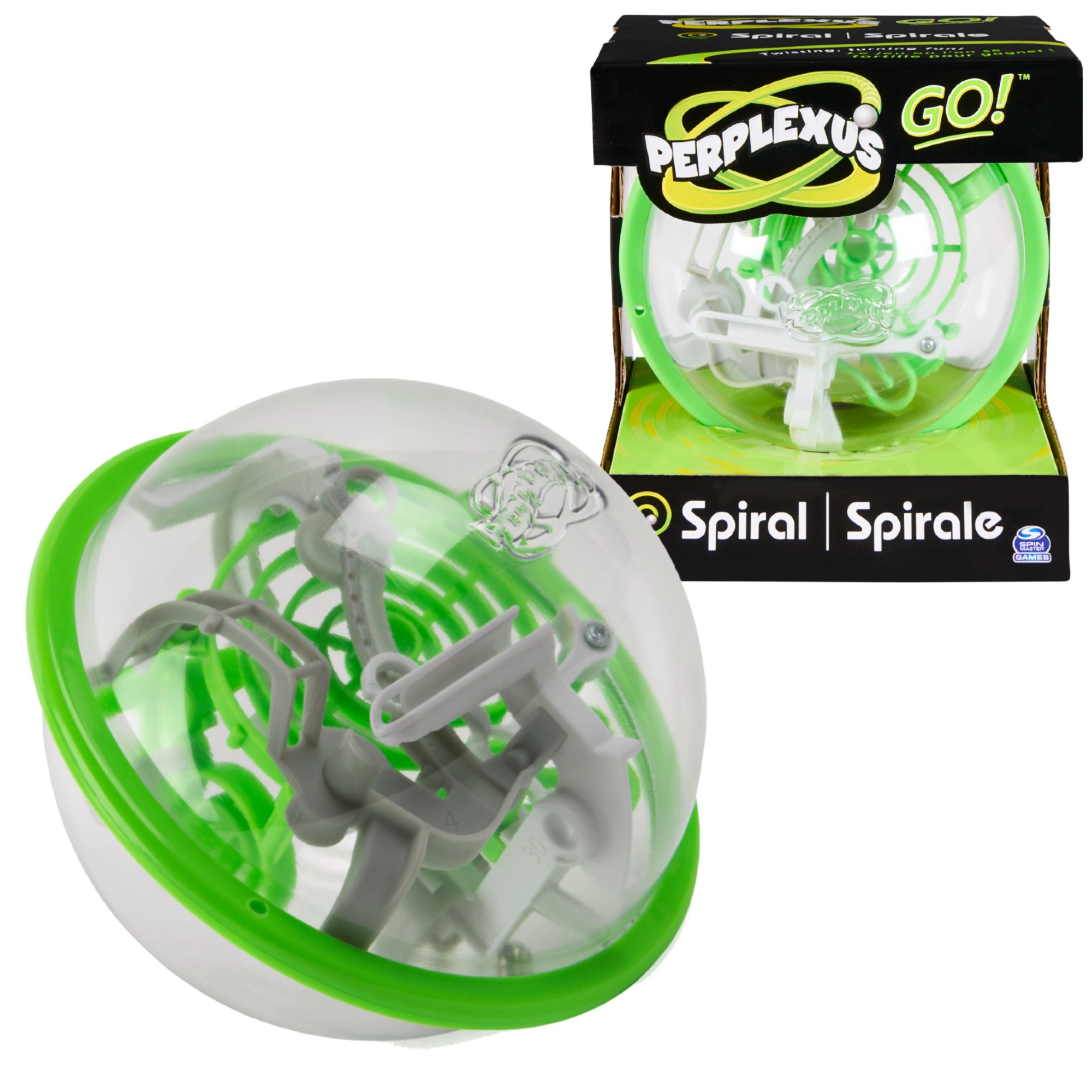 Забавната логическа игра Perplexus Go от марката Spin Master в компактна зелена топка предлага 3D лабиринт, в който вашата задача е да преведете сачмата по целия път без да падне от трасето. Играта е лесно преносима, тренира търпение, сръчност и наблюдателност и ще впечатли деца и възрастни.