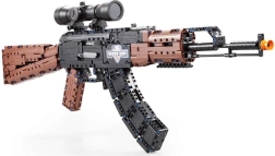 Този реалистичен конструктор от марката Double Eagle/CaDA предлага детайлен модел на автоматична пушка AK-47 с множество функционални детайли. Благодарение на здравите блокчета и умните конструктивни решения ще се насладите на стабилно сглобяване, множество движещи се части и автентична визия за игра и изложение.