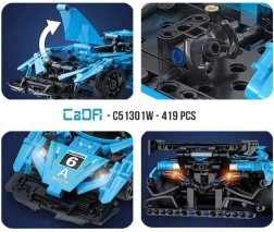 Сглобете своя собствен спортен автомобил Helios от CaDA и се насладете на каране с дистанционно управление Dual Mode чрез 2,4 GHz контролер или Bluetooth приложение. Моделът, дълъг почти 40 см, предлага светещи LED, подвижни елементи (отваряем капак, волан, седалка) и гумени колела за плавно движение. Идеален подарък за малки и големи конструктори – 419 части гарантират забавно сглобяване и страхотна визия.
