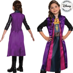 Този официално лицензиран костюм на Disney пресъздава вярно визията на роклята на героинята Анна от любимата приказка Frozen – Леденото кралство. Дългата рокля с изразени лилави панели, черни ръкави и декоративни детайли се носи удобно и изглежда чудесно на всяка детска фигура.