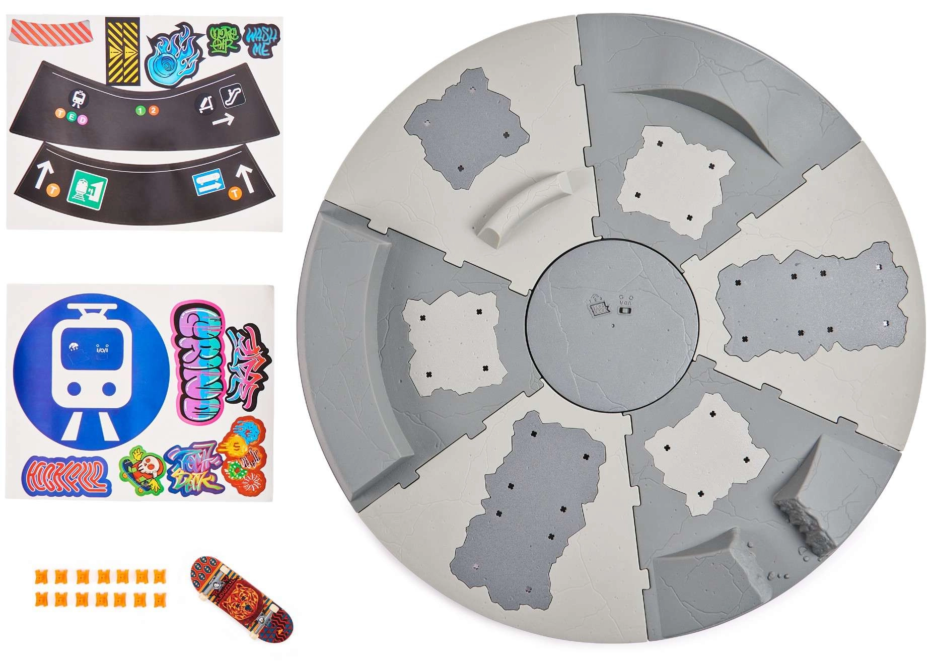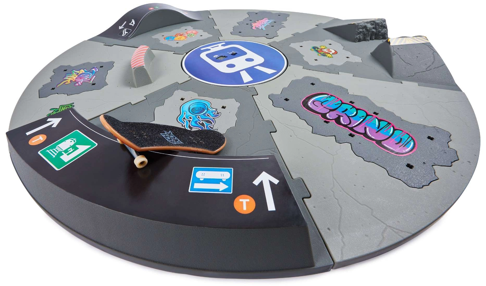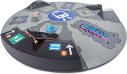 Построй компактен скейтпарк на масата и покажи най-доброто от фингърбординга. Въртящата се основа със сегменти, рампи и перила позволява плавно 360° въртене, така че можеш да променяш посоката на каране и трудността на триковете без да преподреждаш парка. Идеално за тренировка на ollie, grinds и manuals.