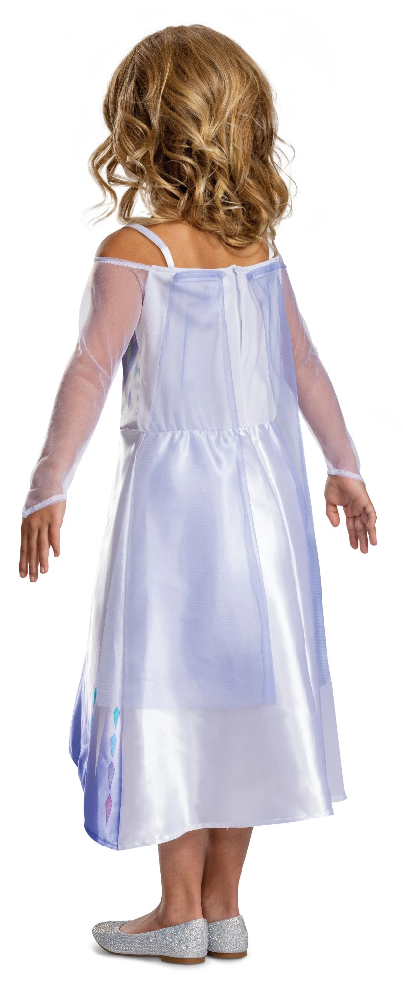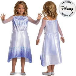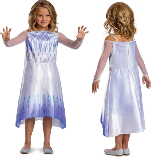 Превърнете ежедневната игра в ледено кралство с костюм, вдъхновен от героинята ЕЛЗА от филма DISNEY FROZEN. Роклята в нежни тонове на бяло, люляково и сребърно има полупрозрачни ръкави, принтирана горна част с „ледени“ мотиви и спускаща се пола с плавен цветови преход и дребни диамантени шарки.