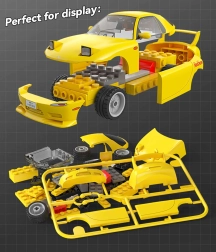 Насладете се на сглобяването на легендарния автомобил от поредицата Initial D – модел MAZDA RX-7 FD3S в елегантен жълт цвят. Благодарение на 66-те части моделът е идеален за по-неопитни конструктори и деца от 8 години. Налични са гумени колела за лесно движение по различни повърхности и детайлна изработка, която ще зарадва феновете на култовата поредица и колекционерите.