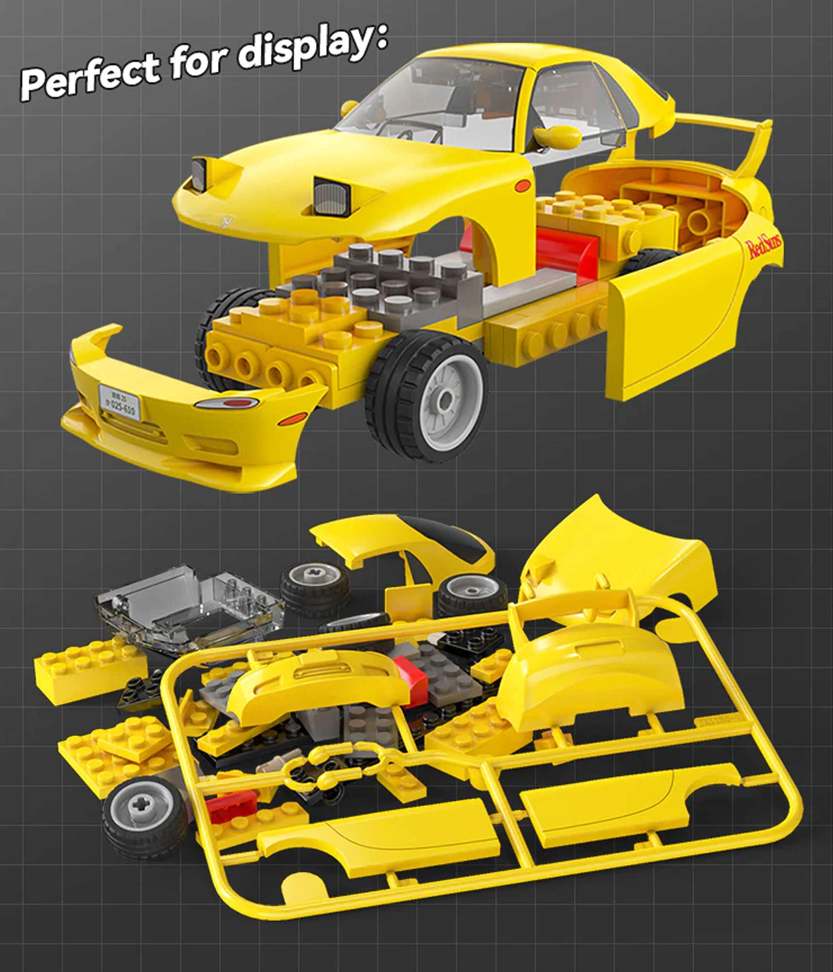 Сглобете емблематичния спортен автомобил MAZDA RX-7 FD3S от поредицата Initial D на марката CaDA. Компактният конструктор с 66 части в мащаб 1:35 предлага бързо и забавно сглобяване, гумени колела за плавно движение и жълта каросерия с черни детайли. Отличен за начинаещи и напреднали конструктори и възможност за разширение с дистанционно управление.