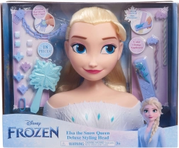 Тази делукс стилизираща глава ЕЛЗА от обичаната приказка Disney Frozen предлага на децата безкрайни възможности за прически. Дългата руса коса може лесно да се разресва, сплита и декорира с включените аксесоари. Реалистичните детайли на лицето и нежният грим на очите подсилват вълшебното изживяване при игра.