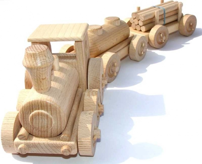 Влакът има заоблени ръбове и подвижни елементи, като въртящи се колела, което допринася за по-голяма интерактивност и безопасност по време на игра. Подходящ е и за игра в пясъчник.
