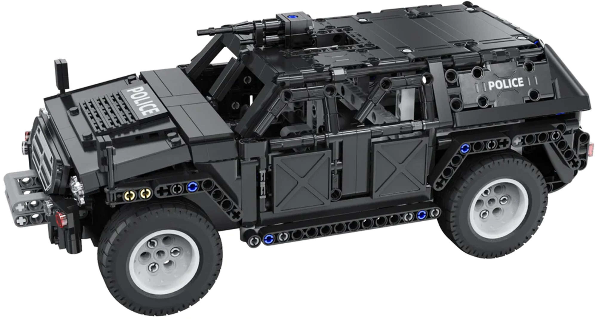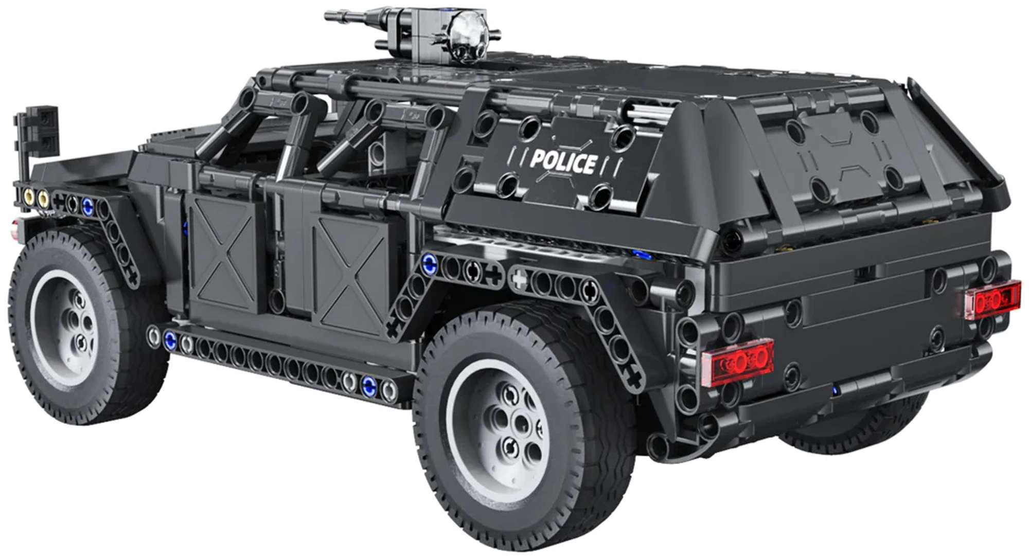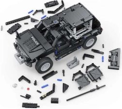 Конструкторът от серията CADA Make Your Bricks Move е страхотен за всички, които обичат технически предизвикателства и динамична игра. Благодарение на детайлната конструкция, функционалните елементи и дистанционното управление ще се насладите на реалистично шофиране и атрактивно изложение на модела. Черното изпълнение със сиви акценти и ярки надписи POLICE подчертава здравия вид на SUV.