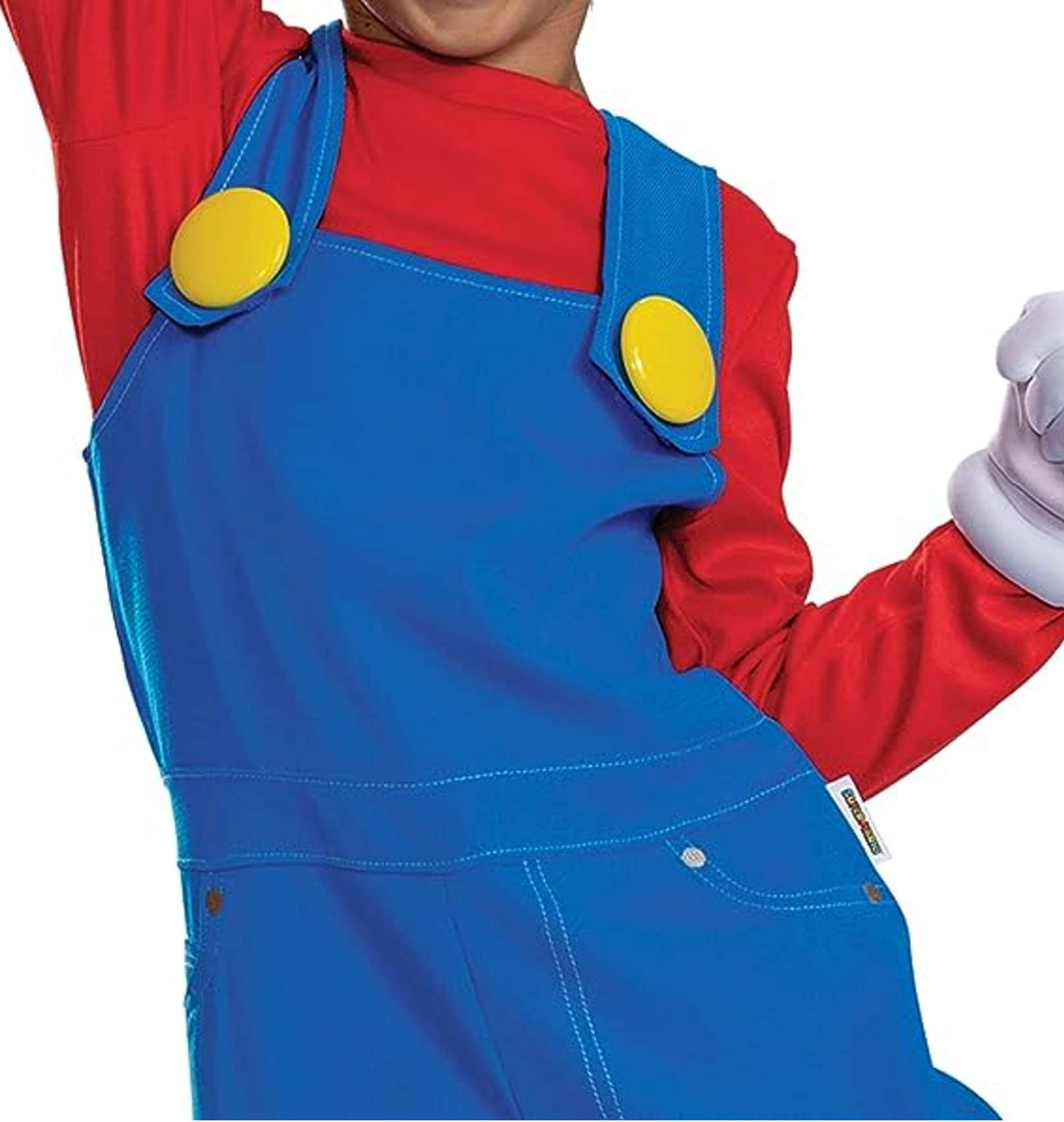 Влезте в света на SUPER MARIO с удобен и забавен костюм за деца на възраст 4–6 години. Този официално лицензиран комплект от марката Disguise включва червено-син гащеризон с жълти копчета, шапка и емблематични мустаци. Идеален за карнавал, маскен бал и игра у дома – лек 100% полиестер, лесна поддръжка и размер за ръст 109–126 см.
