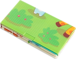 Две оригинални страни – сладки жирафи и весели животни на цветен фон. Контрастните илюстрации подпомагат визуалното възприятие и ученето по време на игра.