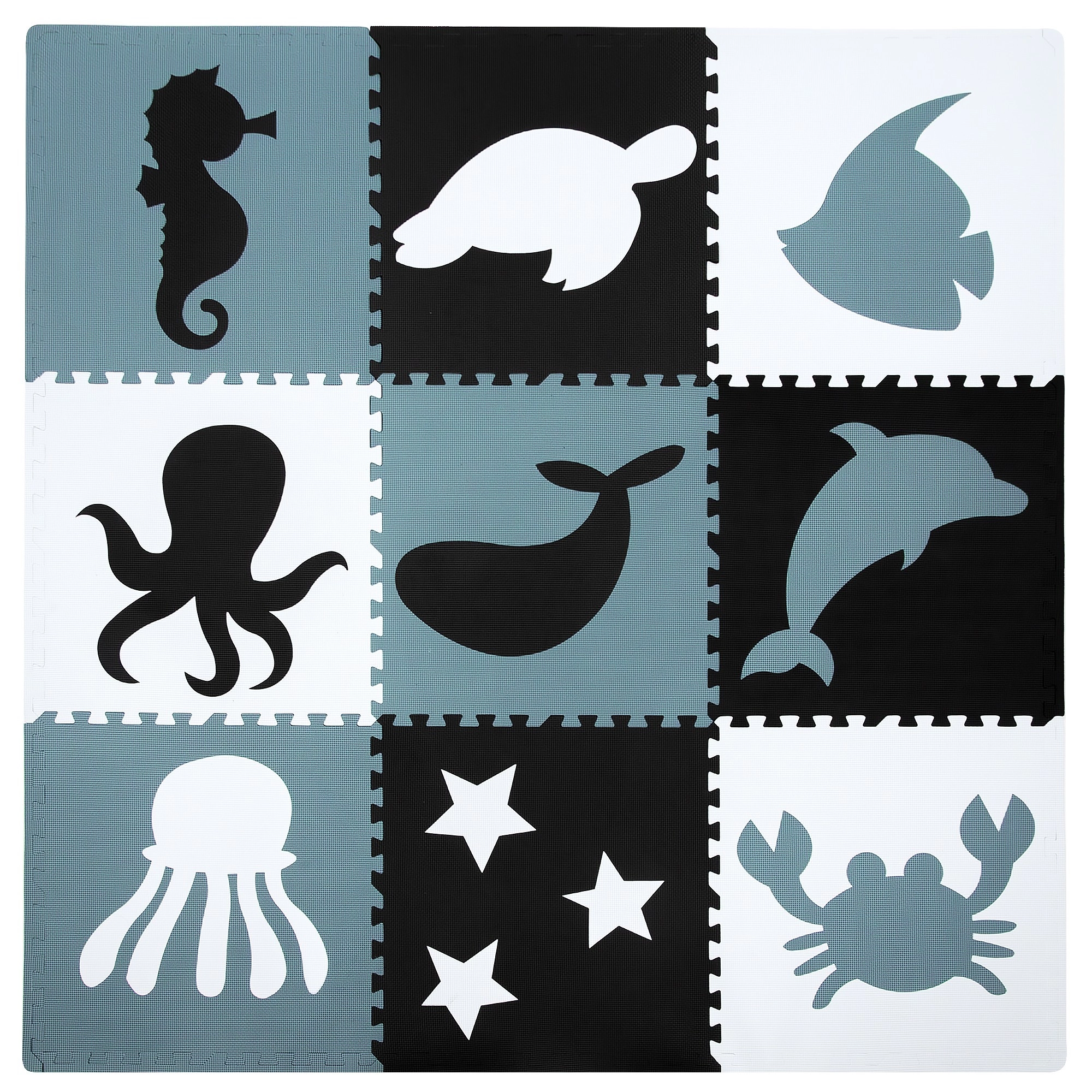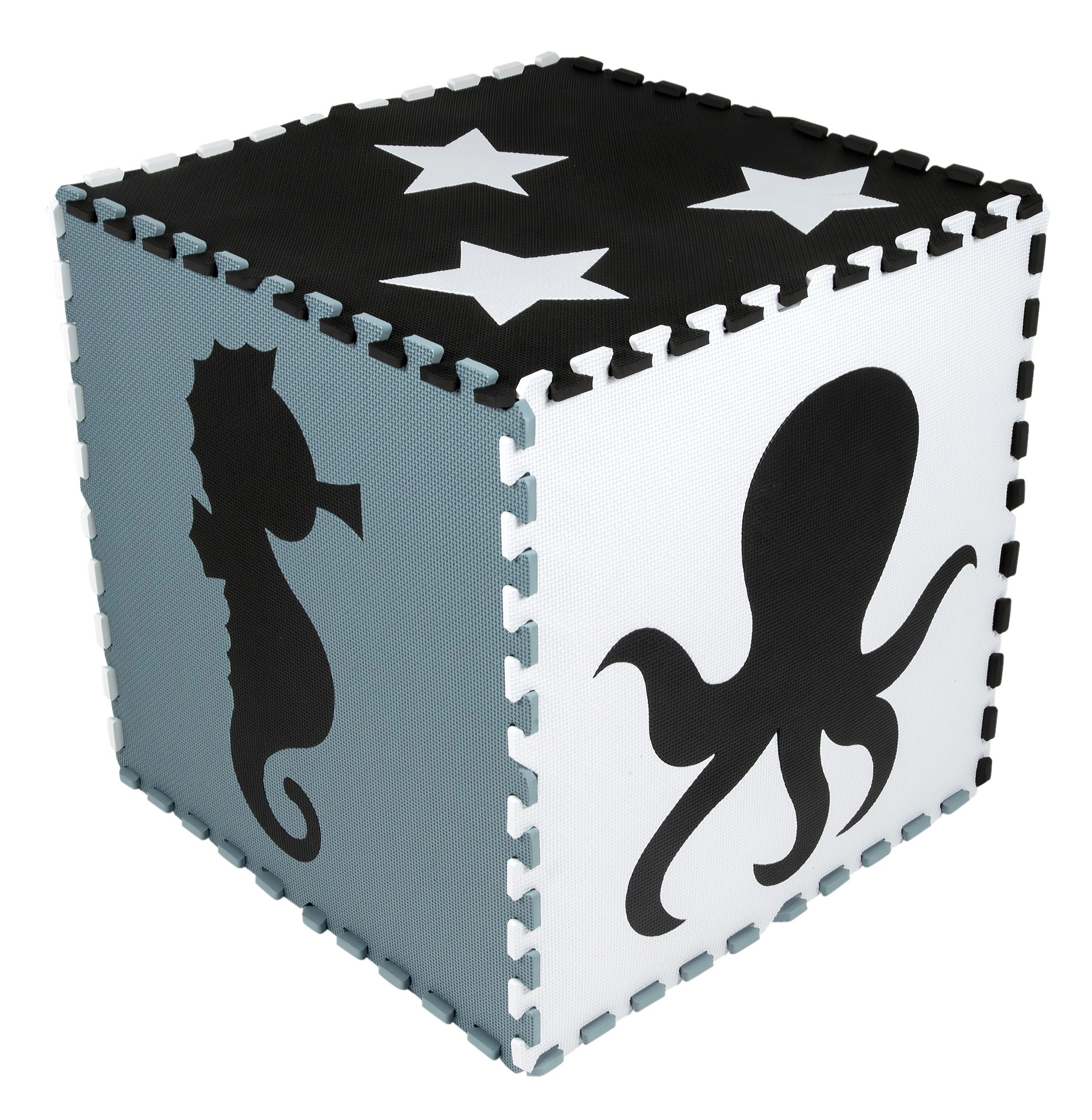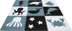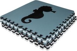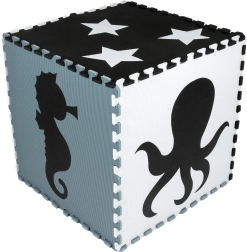 Неутралните, спокойни цветове не разсейват децата по време на игра и лесно се вписват във всеки интериор – детска стая, игрална зона или детска градина. Подвижните централни елементи с форми (морско конче, костенурка, риба, медуза, кит, октопод, делфин, звезди и рак) подпомагат развитието на моториката и ученето на животните. Елементите могат да се разширяват (в рамките на същия модел) и да се сглобяват в куб или други 3D форми.